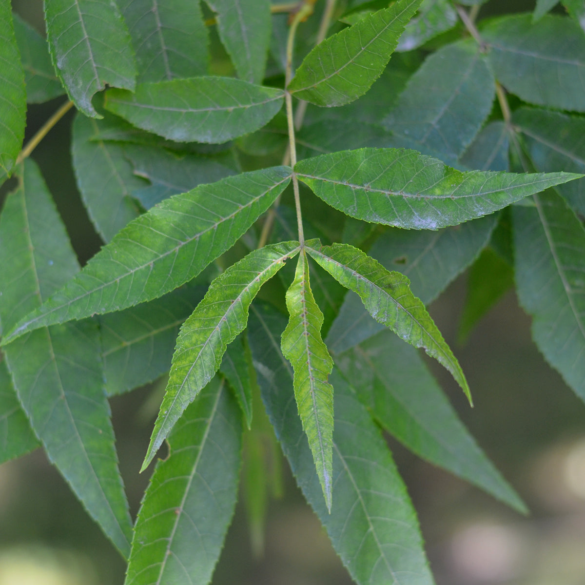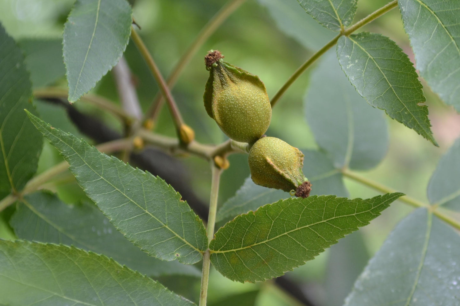 LeavesShape: One leaf is composed of 7-11 leaflets on central stalk. Coarse textured pointy leaflets Summer Foliage: Dark greenFall Foliage: Yellow