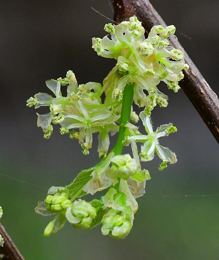Flowers Small hanging clusters of pale yellowish-green flowers appear before leaves emerge in the spring