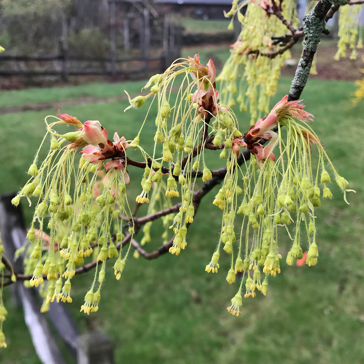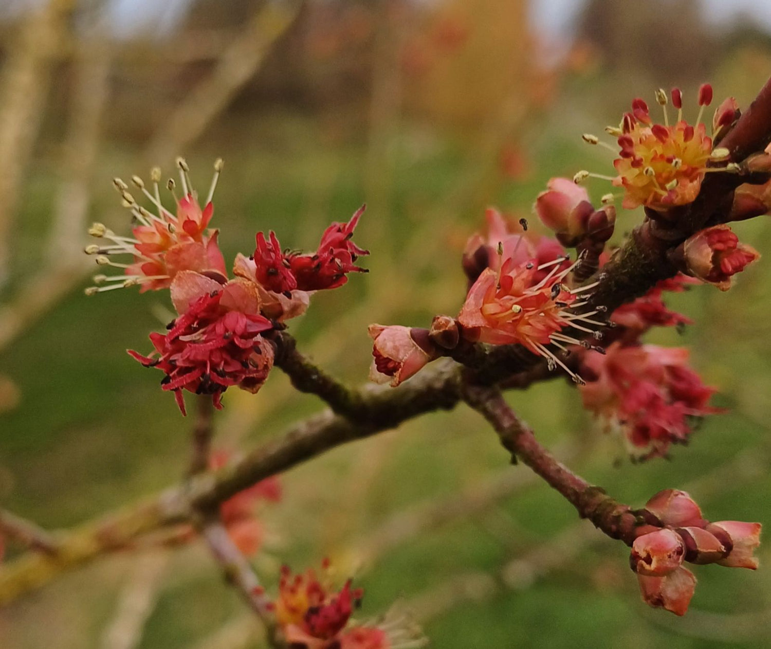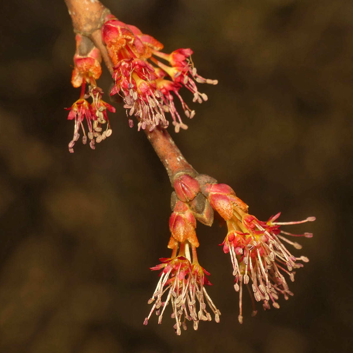 Flowers Small and red to yellowish orange. Growing in clusters on slender stalks. Bloom in late winter to early spring before leaves appear