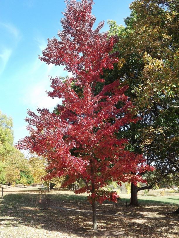 LeavesShape: Typically, three prominent triangular lobes but can have as many as five lobes with "V" shaped notchesSummer Foliage: Bright green with pale green underside Fall Foliage: Bright red or scarlet
