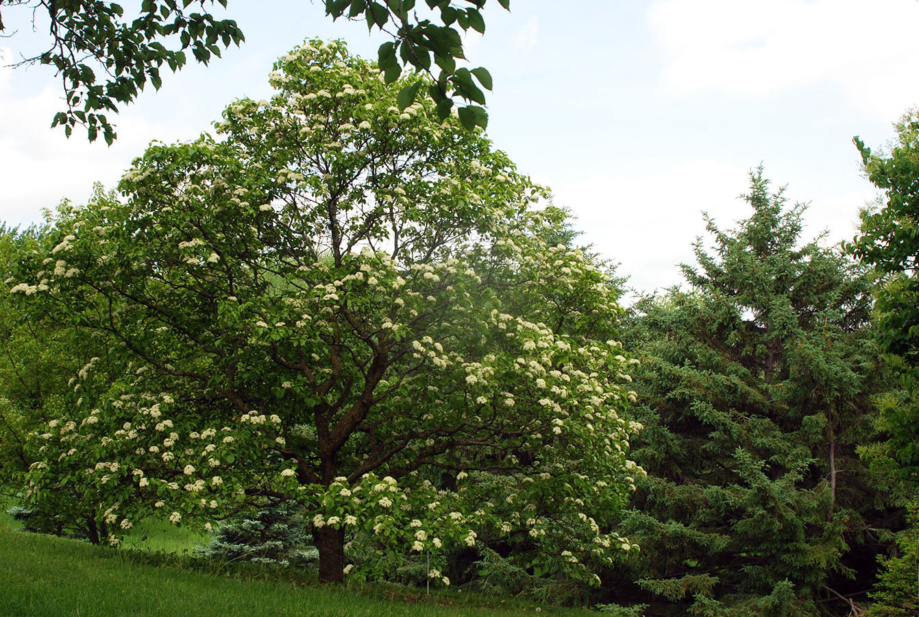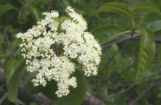 Flowers Creamy-white, flat-topped clusters bloom in the spring