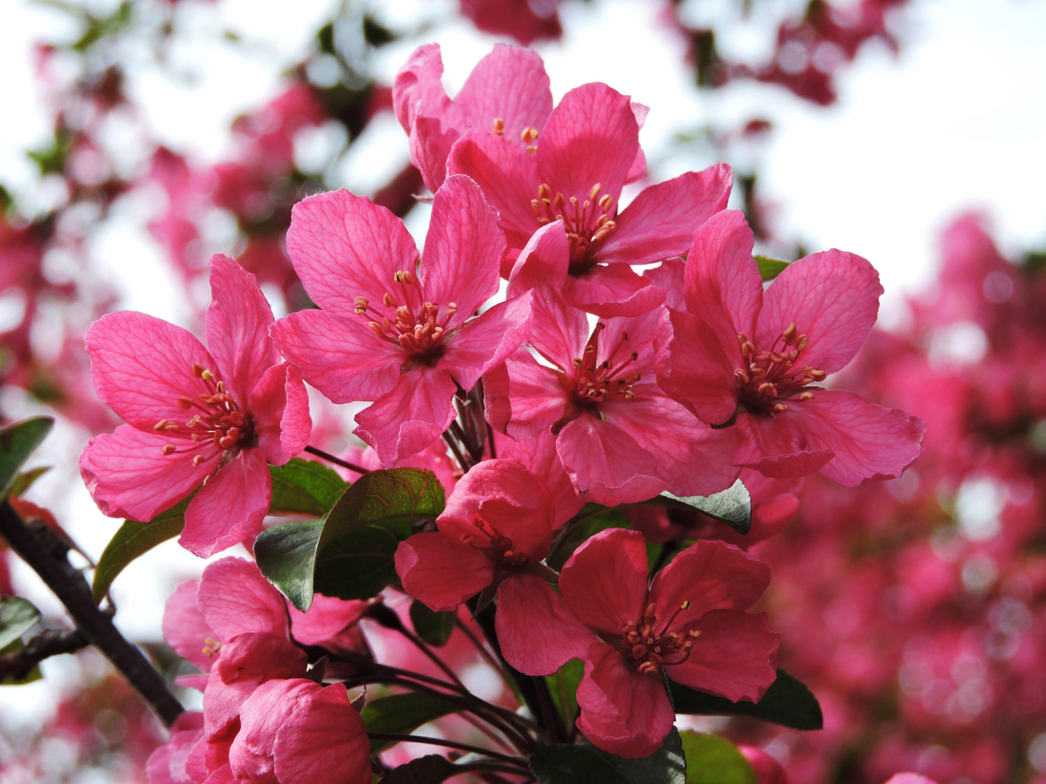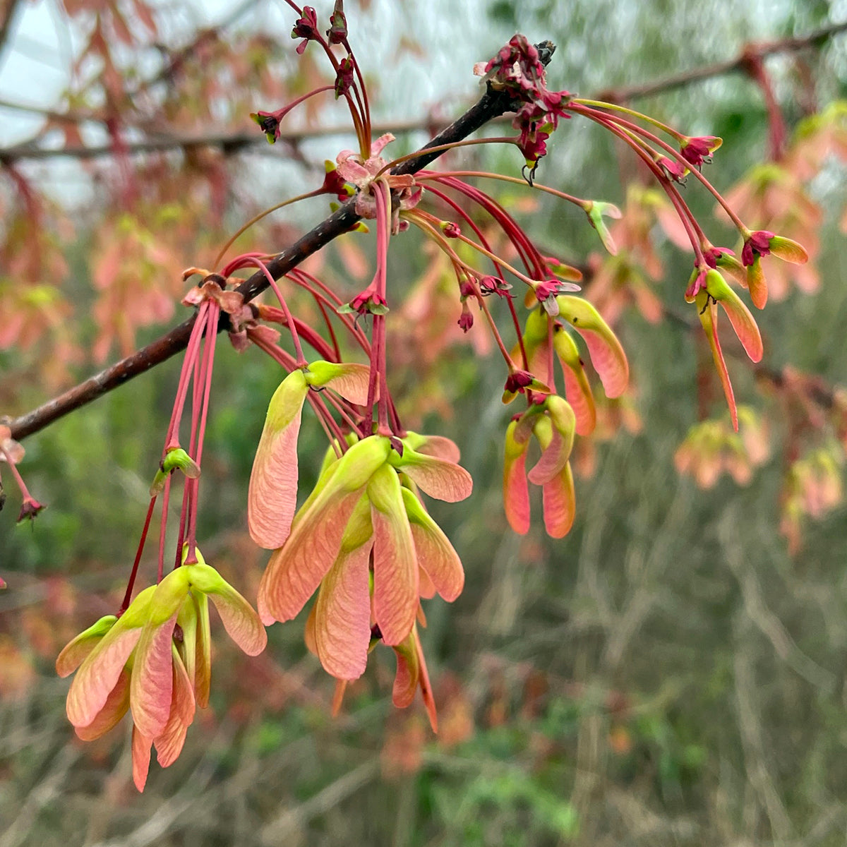 Flowers Rounded clusters of tiny red flowers, spring-blooming
