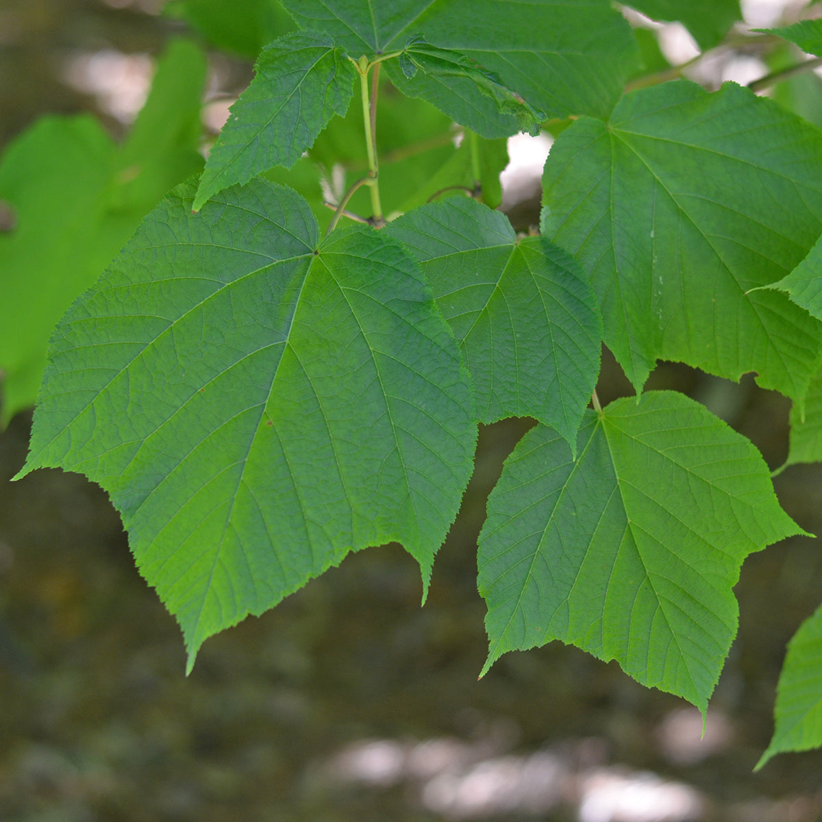 LeavesShape: Typically, three to five lobed with "V" shape notchesSummer Foliage: Mid green with silvery underside Fall Foliage: Orange-red to purple in autumn